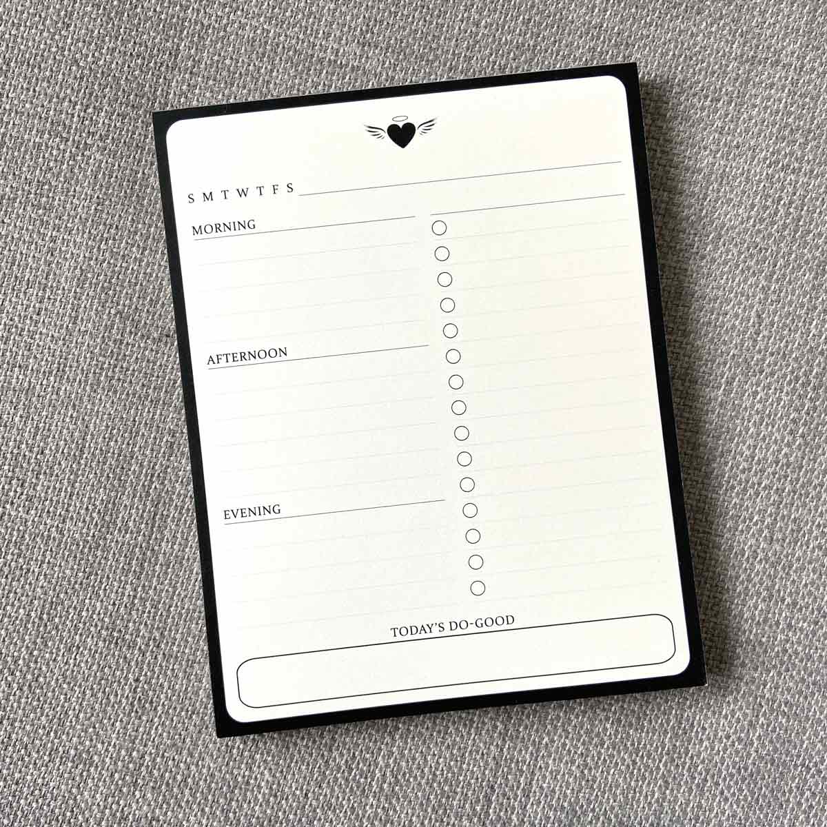 This is the perfect notepad to keep you on task every day. Jot down your to-do's and commit to doing something good each day! This Do Good Daily Notepad is available in kraft paper or recycled white paper; 50 sheets per notepad; 4.3 x 5.5"
